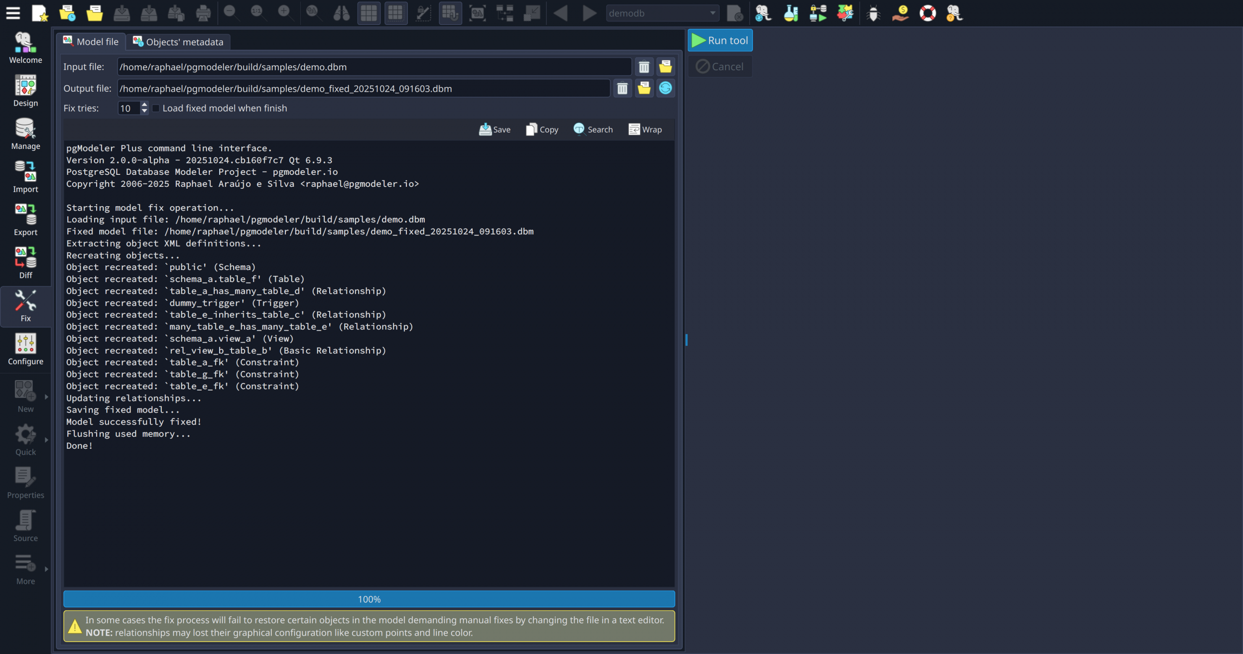 Looking ahead, pgModeler Plus is set to receive, until the stable 2.0, a new plugin that will allow users to create reusable model objects. These objects can be stored and leveraged across multiple modeling tasks, streamlining repetitive workflows and enhancing productivity when designing complex database structures. Another plugin is being planned, and will bring integration with git so users can make proper version control over database model files.